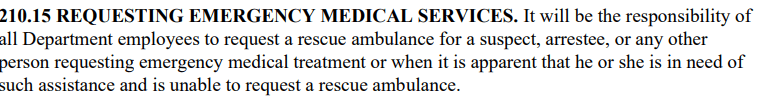 A rescue not being available, however, doesn’t mean a request for one doesn’t get made. If a person makes a 911 call, or another first responder radios that EMS assistance is necessary, the call is logged within a computerized dispatch system and held until the next unit is available. Meanwhile, admin can shore up ambulance supply through a variety of tactics, including shutting down non-critical interfacility transfers, upgrading all patient transports to use lights and sirens, and pressing neighboring units into service through pre-existing mutual aid agreements. Even if the officer’s seeming assumption that no ambulances were available were correct, it wouldn’t warrant not requesting one.